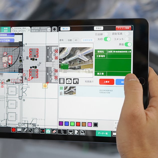 写真・電子黒板・図面などをタブレットで管理しペーパーレス化を実現。
