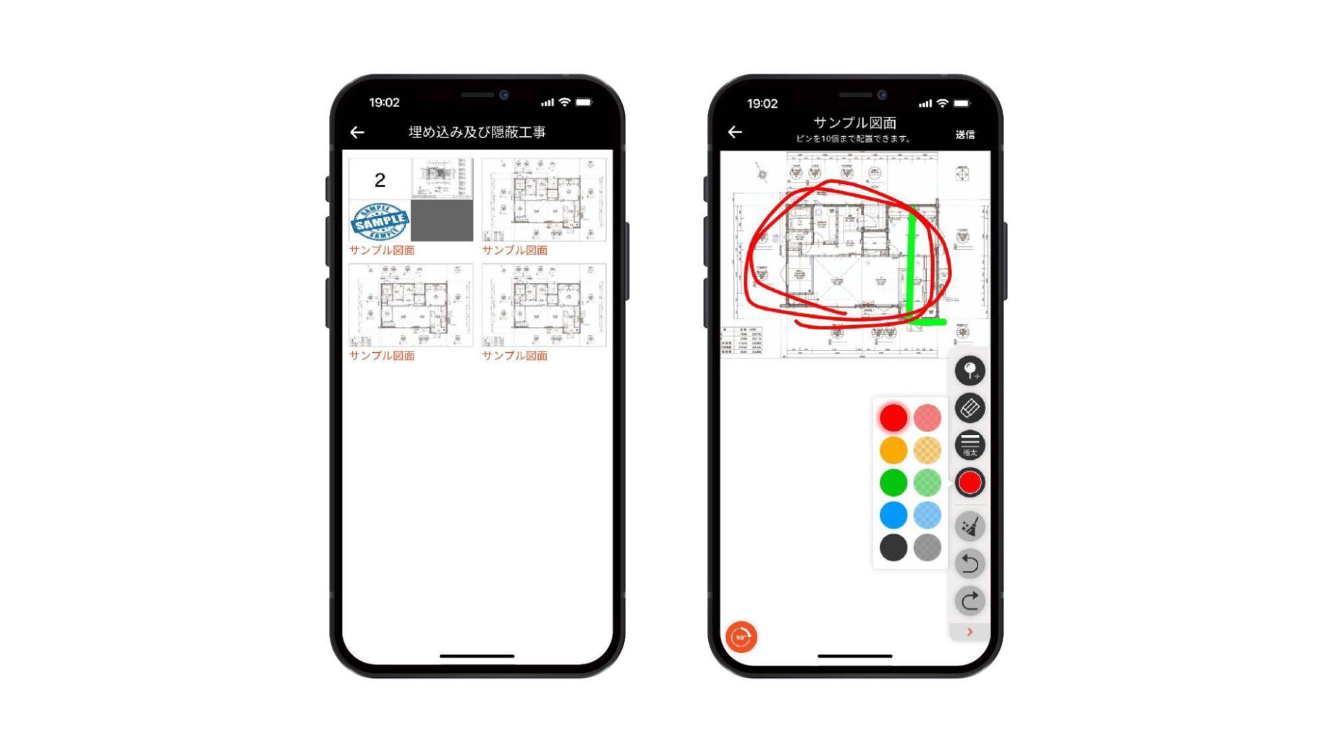 チャット上で共有している図面への書き込みなども可能です。