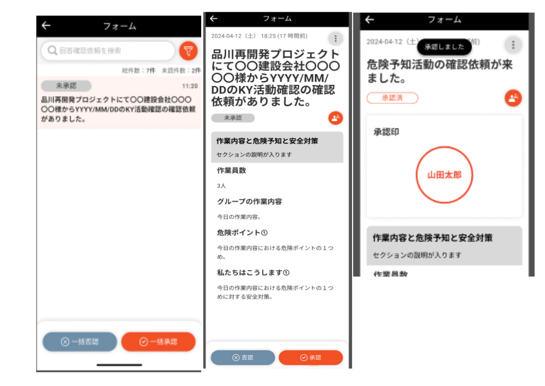 専門工事の技能者たちが朝早い時間に現場に出勤して紙に入力する代わりに、手元のスマートフォンから手軽に入力して提出可能です。