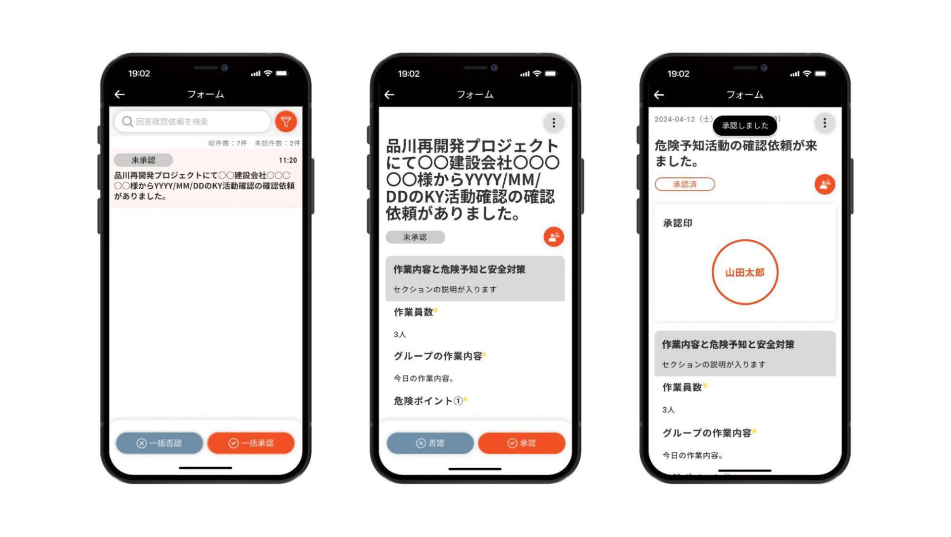 iOS/Android対応。特許技術で、現場監督から多様な専門工事業の技能者まで「伝えるべき人」に「伝えるべき情報」を整理